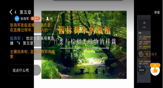 “同学们,晚上好,现在开始上课,今天的课程是园林树木的栽植。”